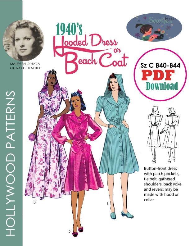 The other pattern, which I just finished, is for a hooded dress or beach coat from the early 1940’s.